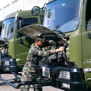 ★驾驶员是部队执行练兵备战任务的重要组成力量之一,这是火箭军某团驾驶员检修车辆。