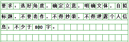 要求:选准角度,确定立意,明确文体,自拟标题;不要套作,不得抄袭;不得泄露个人信息;不少于800字。