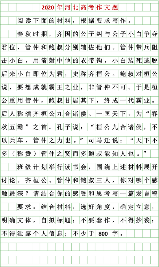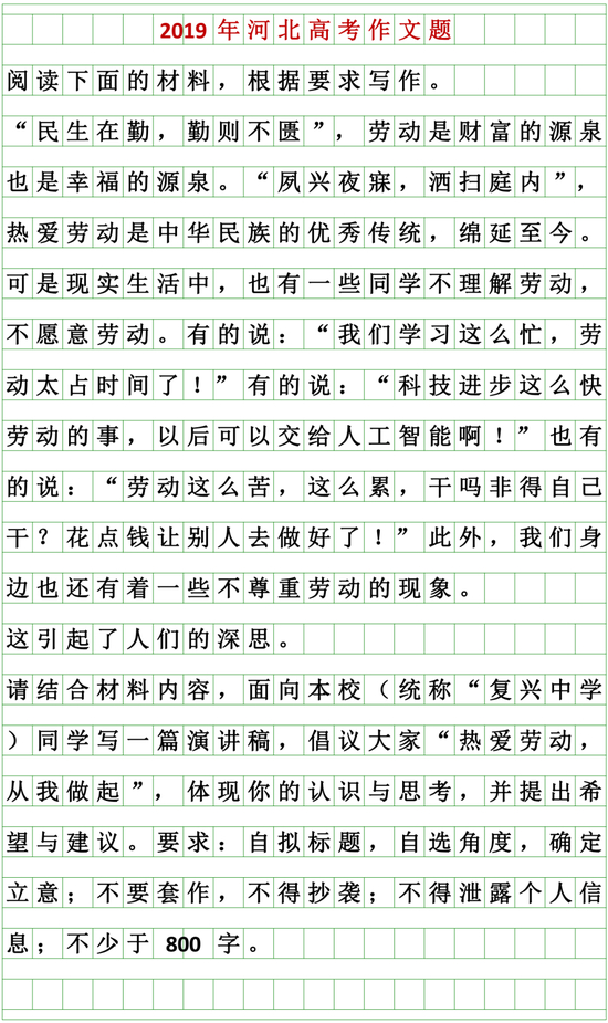 今年河北高考语文卷的作文题目长这样