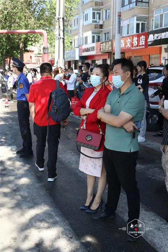 场外等待接孩子的家长和首场考试完毕