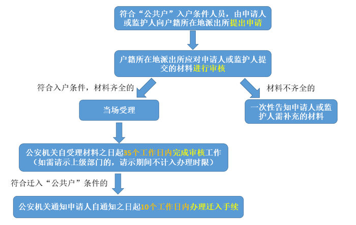 1、申请人或监护人申请迁入“公共户”的办理流程及时限。