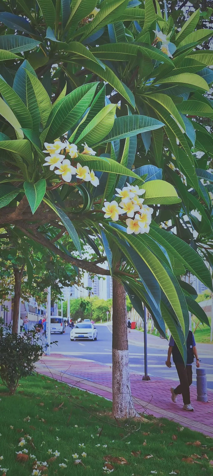 校园大道上静静绽放的鲜花