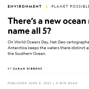你能说出世界“第五大洋”吗?美国《国家地理》杂志网站当地时间8日刊文称,从6月8日世界海洋日开始,该杂志承认“南大洋”为世界“第五大洋”。