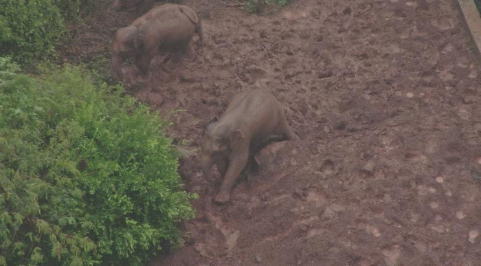 连续降雨特别是今天(6月10日)的中雨,为不断迁徙的云南断鼻象群带来了别样的惊喜。