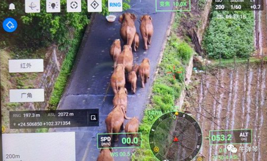 为了保护这群大象,云南出动了大批警力,24小时监控象群动态,9台专用无人机,无人机还配备了夜间观察的红外设备。