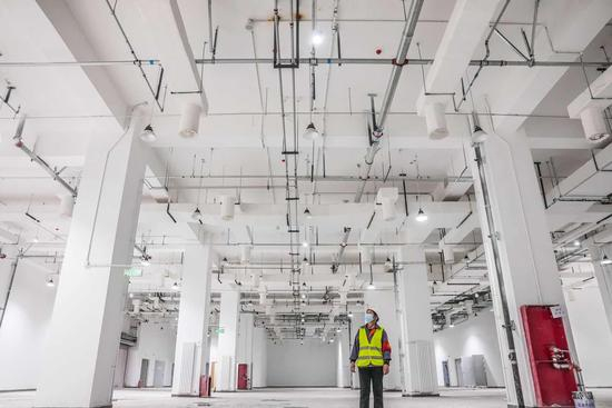 流通中心占地面积约305亩,建筑面积约61.6万平方米。其中,主功能区建筑面积48.3万平方米,共8栋楼,地下2层,地上4层、局部5层,主要用于批发、交易、展示和体验。商务配套区建筑面积13.3万平方米,共5栋楼,地下4层,地上6层、局部7层,主要为商户提供办公、工商、税务、金融等一系列的配套服务。