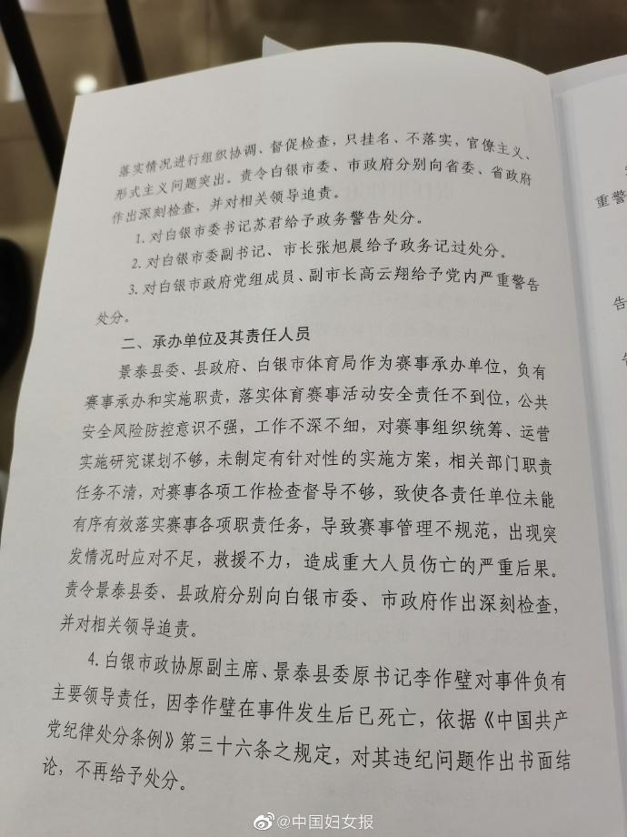 甘肃白银马拉松事故通报:27名公职人员严肃追责问责