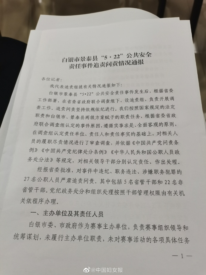 原标题:白银市景泰县“5•22”公共安全责 事件追责问责情况通报:27名公职人员严肃追责问责