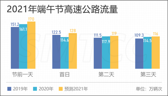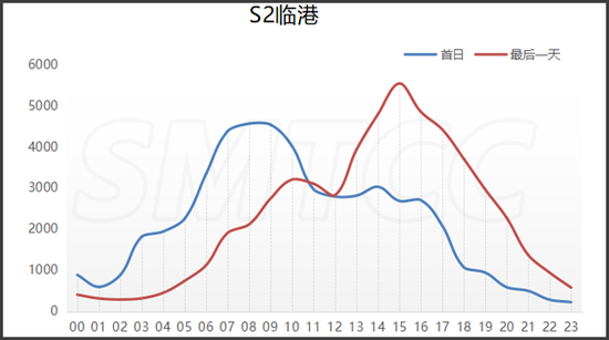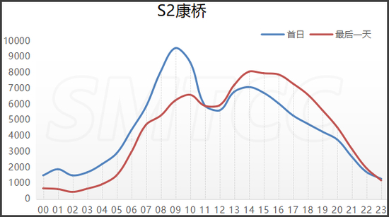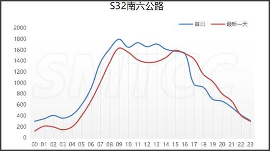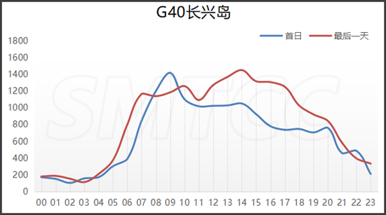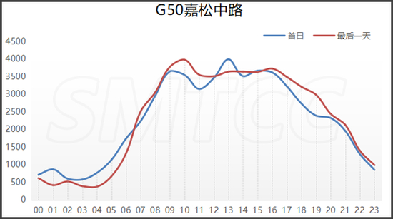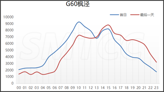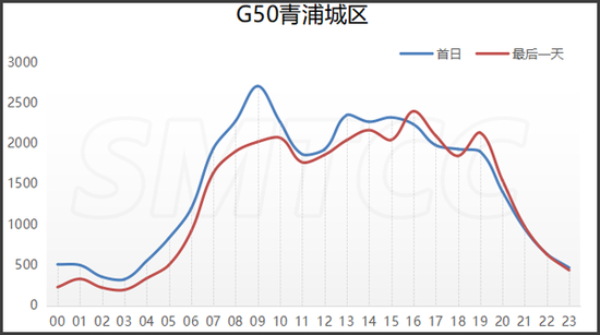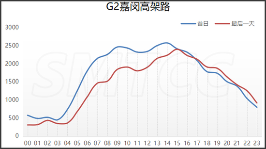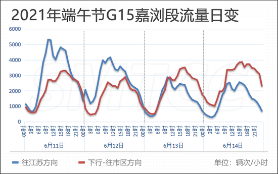 预计端午节期间,G15嘉浏段日均流量为10万辆次,较2019年增长7.5个百分点。首日流量高峰出现在上午9点到11点,平均小时流量达6420辆次(双向),次高峰为下午14至16时,平均小时流量达6160辆次(双向)。最后一天,预计日流量(双向)为10.1万辆次,流量最大时段为上午9至10时,平均小时流量达5850辆次(双向);次高峰为下午13至17时,平均小时流量达6100辆次(双向)。