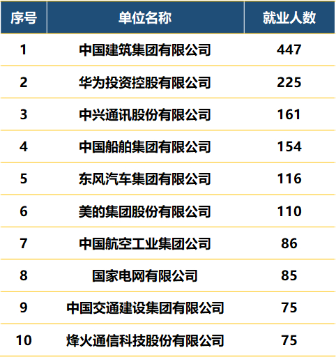 2020届毕业生面向世界500强及知名企业就业情况(部分)