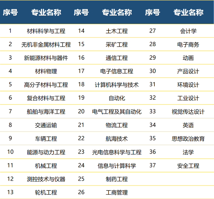 “建材建工、交通、汽车”三大行业处于国民经济发展中的支柱性和基础性地位,这是武汉理工大学最鲜亮的底色。源于三校合并,立于三大行业,武汉理工大学经过长期的育人实践,已经形成了以工科为主,理、工、经管、文、法、艺术等多学科相互渗透、交叉融合的学科专业办学体系,拥有国家级一流本科专业建设点37个、国家级特色专业15个、国家卓越工程师试点专业28个。