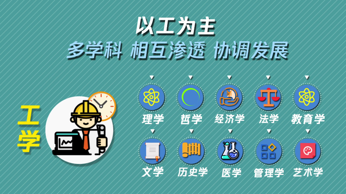 学校已形成以工学为主,理、工、经、管、艺术、文、法等多学科相互渗透、协调发展的学科专业体系