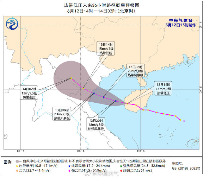 预计,“小熊”中心将以每小时20公里左右的速度向西偏北方向移动,强度略有增强,并将于13日上午登陆越南北部。海南省气象局于2021年6月12日16时40分继续发布台风四级预警。