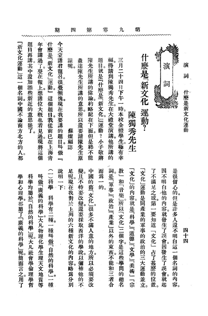 《天籁》中文版刊载的陈独秀演讲
