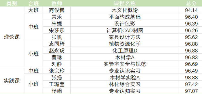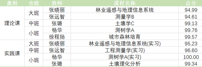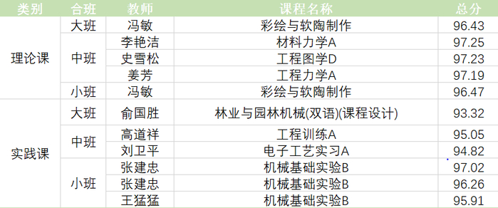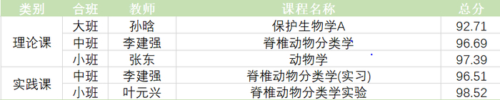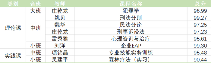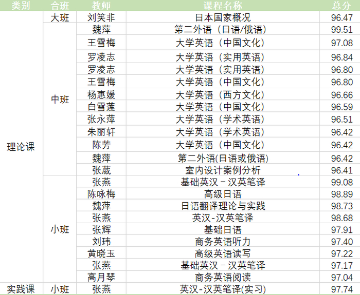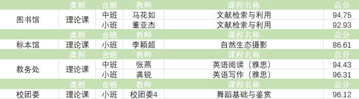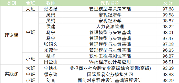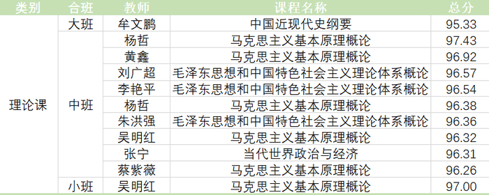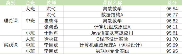 (细心的同学是否有疑问:为什么排名前5%的课程中,同一位老师的同一门课程,总分却不同呢?这是因为这位老师给不同的班级上同一门课,而不同班级对老师和课程的评价总分不同,但都进入了前5%,所以会有同一位老师、同一门课程,总分不同的情况哦~)