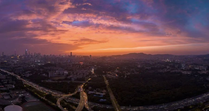 傍晚,天边烧红了一片