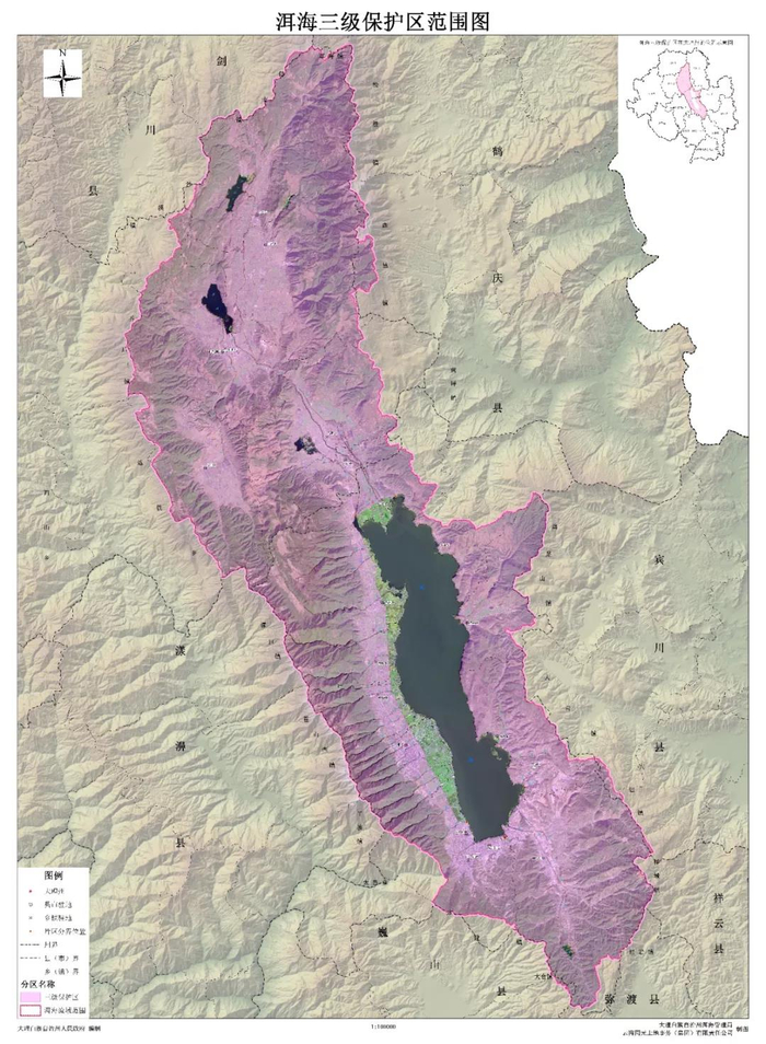 此次划定的洱海流域面积中,一级保护区面积为259.20平方公里,二级保护区面积为106.85平方公里,三级保护区面积为2199.14平方公里。洱海保护管理范围以洱海水体为主的整个洱海流域,包括大理市所辖的下关、太和、满江街道和大理、银桥、湾桥、喜洲、上关、双廊、挖色、海东、凤仪9个镇和洱源县所辖的邓川、右所、牛街、三营、茈碧湖、凤羽6个乡(镇)约2565平方公里的区域。