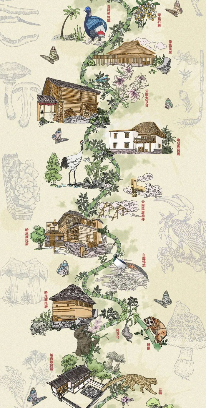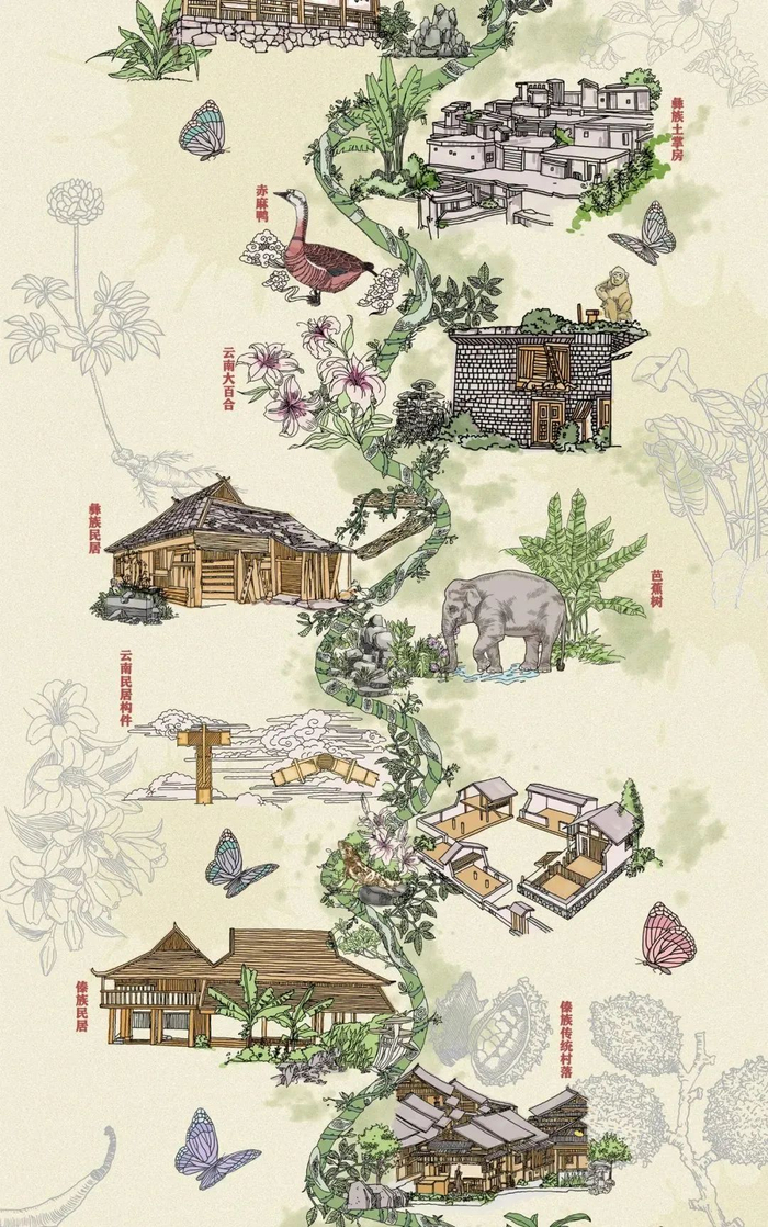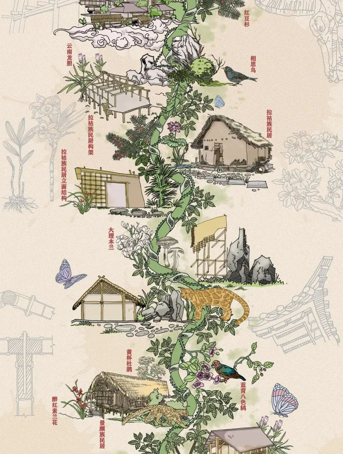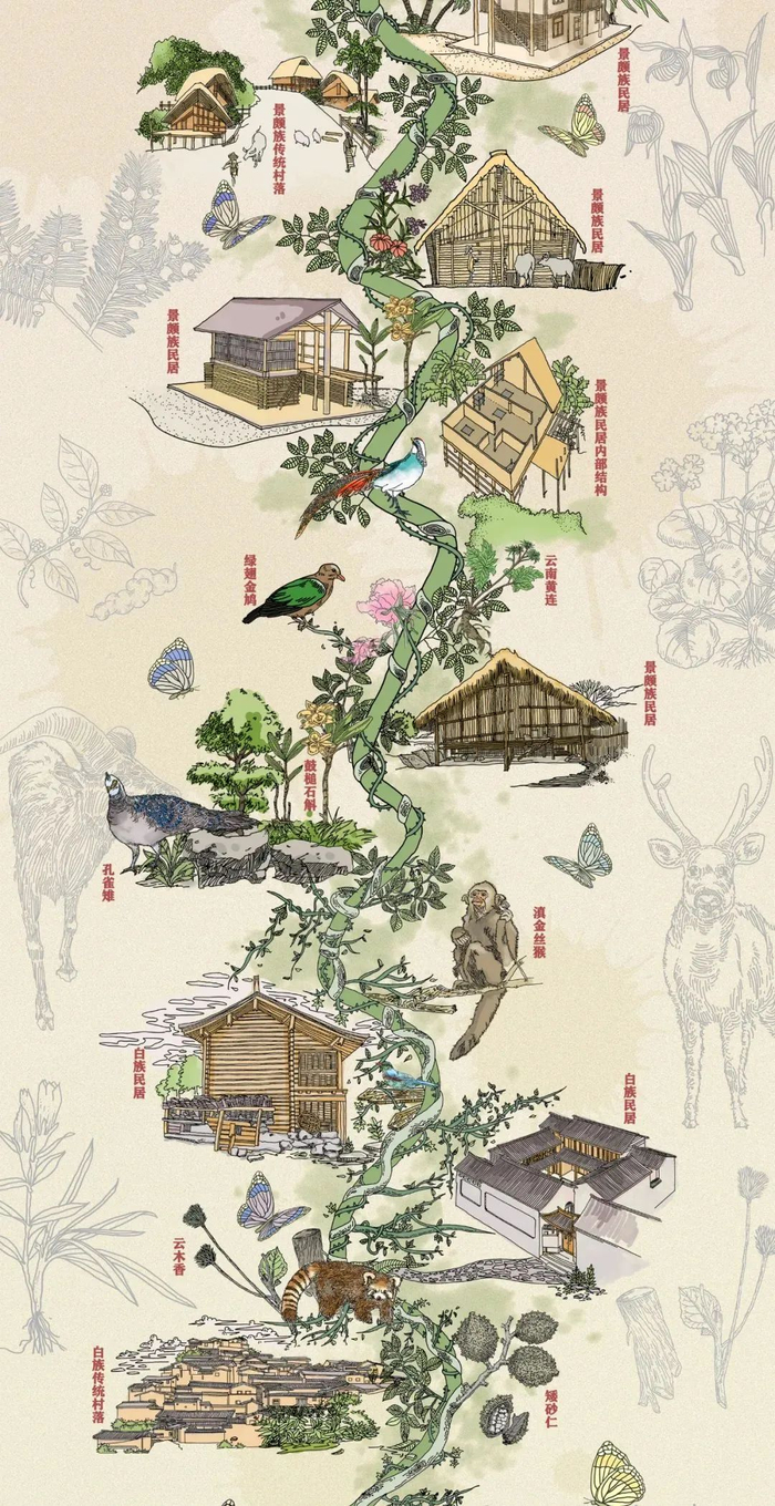 云南民族的传统村寨与自然融为一体,民居建筑从形式、构造、平面布局、空间特征等与生态环境相适应,建筑材料因地制宜等特点,充分体现着云南少数民族敬畏与崇拜自然,亲合与保护自然的生态观,以及具有自然美、山水美、生态美、景观美等特点的审美意识↓↓↓