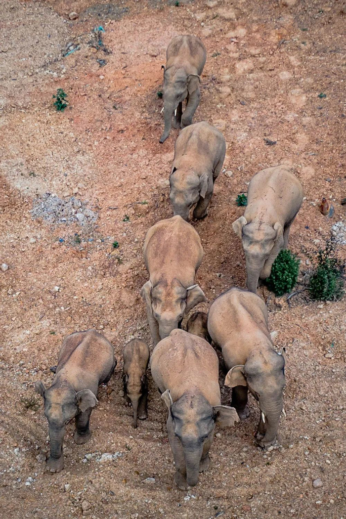 在云南省玉溪市峨山县境内拍摄的象群(无人机照片)