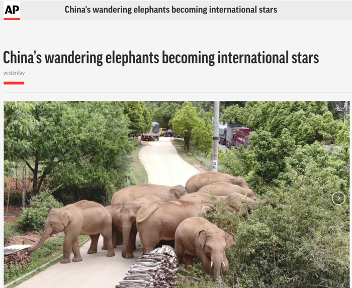 6月8日,美联社报道了此次野象群迁徙的沿途状况以及受欢迎的程度。