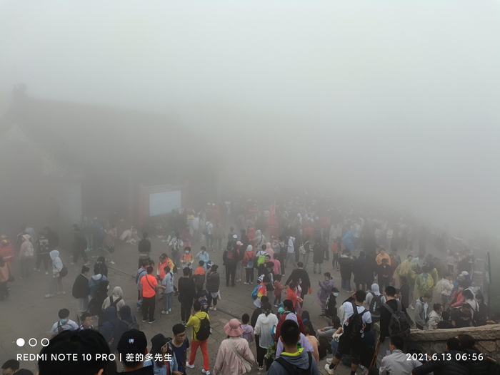 6月13日8时26分,泰山景区中天门游客中心大量游客拥挤。受访者供图