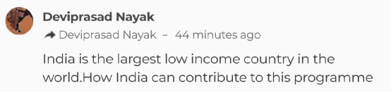 有人说,“印度是世界上最大的低收入国家。印度如何能给这个计划出力呢?”↓