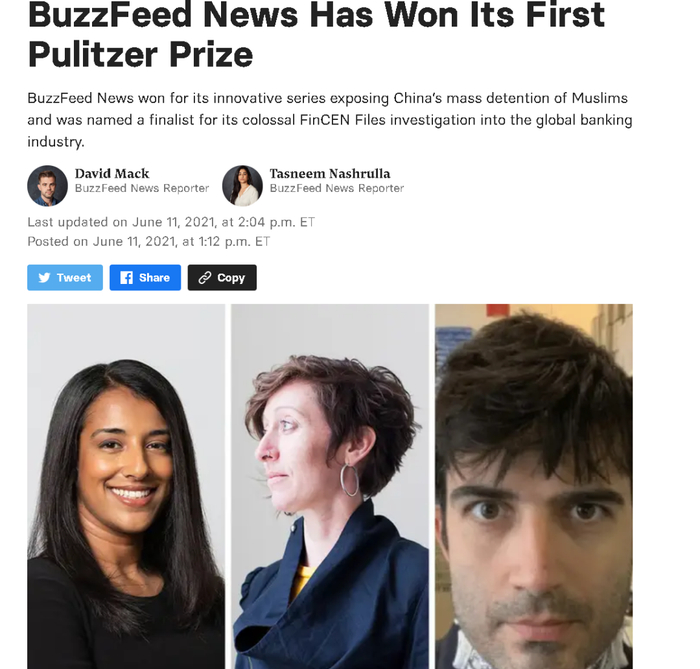 是的,你没看错!近日,美国Buzzfeed新闻网就因为去年撰写的一组抹黑中国新疆政策的系列报道,获得了美国新闻界最高荣誉的“普利策奖”。