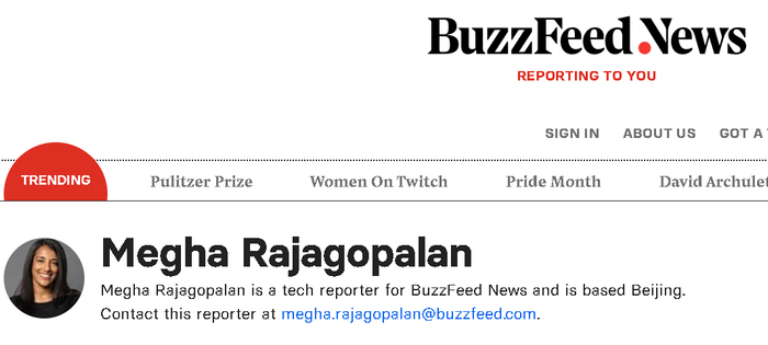 比如,Buzzfeed那组抹黑新疆报道中的第一作者、美籍印度裔记者李香梅(Megha Rajagopalan),就是其中的代表人物。此人过去这些年一直在不断迎合各种反华分裂势力,甚至还支持过反华邪教法X功这种恶臭的反人类极端势力。