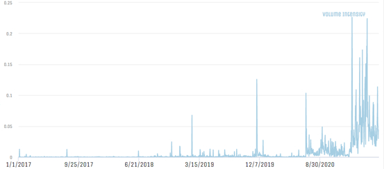 GOOGLE开源大数据集GDELT 中关于西方媒体污蔑新疆“种族灭绝”的时间分布态势。