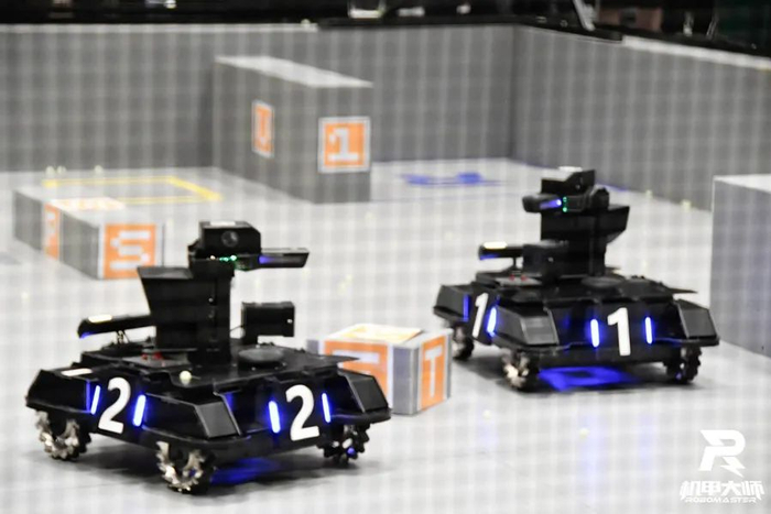 比赛开始2分钟,双方攻守有来有回,分数交替上升,很快便来到了最后一分钟。加弹和补血增益点刷新,在红方1号机器人被先击毁的情况下,蓝方梦想开拓者的两部机器人快速地瞄准并锁定了红方2号机器人,一连串的子弹射出,3秒不到的时间,红方2号机器人也被击毁——