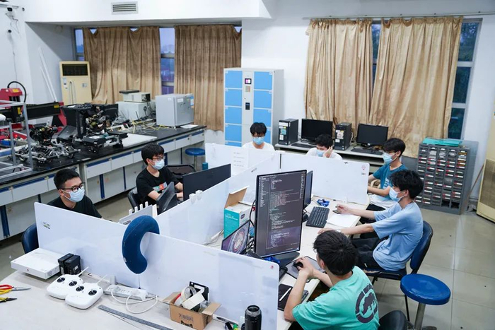 在交流过程中,战队内也偶有分歧。陈湘骥笑称自己为“踩刹车的人”:“我告诉他们一定不要冲动,要更加专心地去做好自己的事情。”听取队员们的反馈、完成技术评估后,他总能及时调解并找到较优解。作为趟过泥潭、走过花路的前辈,陈湘骥也是为这支年轻战队预知风浪、调整航向的掌舵人:上至作战思路调整,下至参赛后勤保障,他都一一指点迷津。