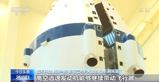 航天科技集团一院长征二号F火箭总指挥 荆木春:飞行到120秒的时候,逃逸塔的话就被抛掉了,这个时候如果再需要进行逃逸,我们就在整流罩上又装了4台高空逃逸发动机。出现故障之后的话,高空逃逸发动机能够继续带动飞行器脱离故障火箭。