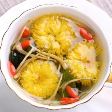 蒲公英+菊花+金银花:可缓解因为体内燥热引起的痘痘、粉刺、口干、口臭、口苦等问题。