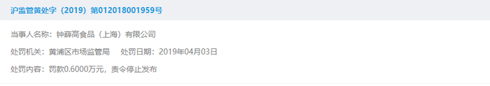 不过红星新闻记者从中国市场监管行政处罚文书网了解到,钟薛高品牌曾因虚假宣传被罚款两次,均涉及原料问题。
