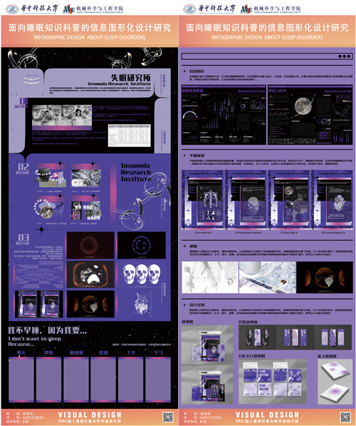 该设计通过对睡眠及其相关知识的研究,分析睡眠及其相关知识,向大众科普睡眠知识,帮助人们快速识别睡眠的有效信息,给人们带来视觉感官治愈之余唤起大众对睡眠障碍这一话题的关注,提高年轻群体对睡眠的重视程度。