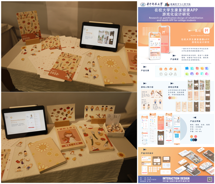 该设计以在校大学生为用户对象,针对大学生在校健康管理、就医等问题的观察分析与总结,使用游戏化设计与劝导式设计融合用户体验等理论用于实践研究,设计一款用于校园社区的医疗健康产品,提高学生就医效率、促进学生主动进行健康运动、建立电子病历的医疗平台。