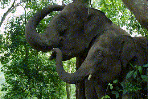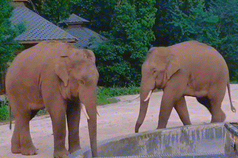 体型相仿的两头象放在一起