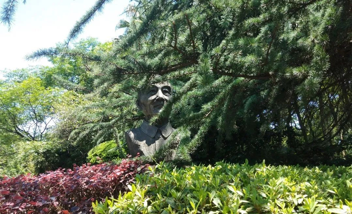 这尊雕塑,由汉白玉制成,象征着北极冰天雪地,冯简的头像和身子慢慢从里走出来,若隐若现,寓意北极的冰被他的大无畏精神融化了。这是重大人对这位“潜德幽光一学人”、“无声之科学英雄”的深深纪念。