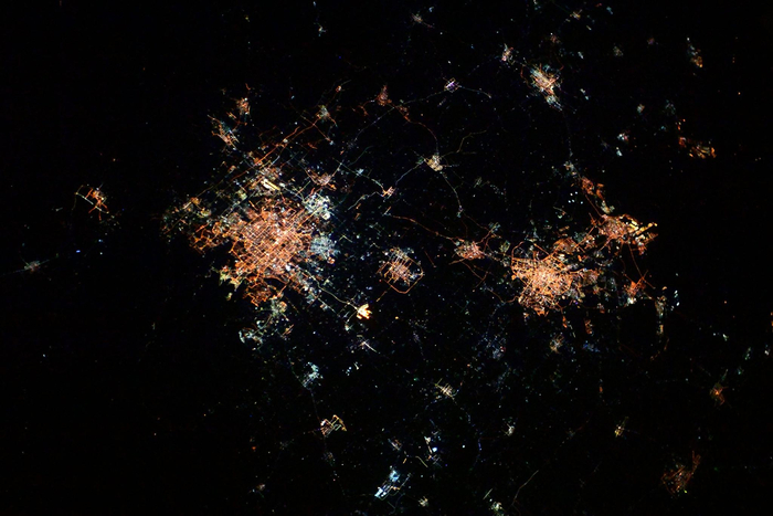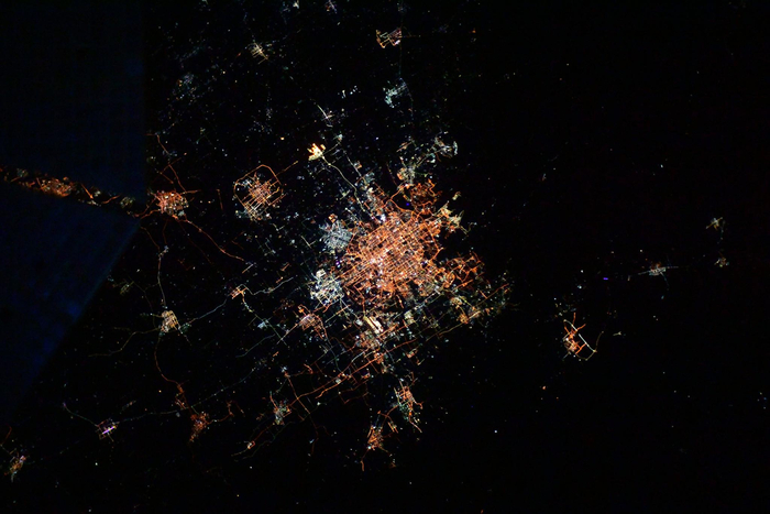 他还配了一张从太空俯瞰地球的图片,可以看到地面上的“万家灯火”。