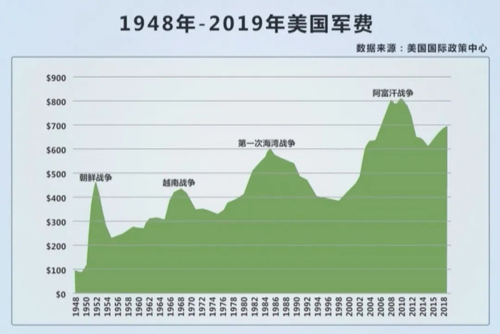 就这样,每经过一次战争,美国军费就整体上一个台阶。