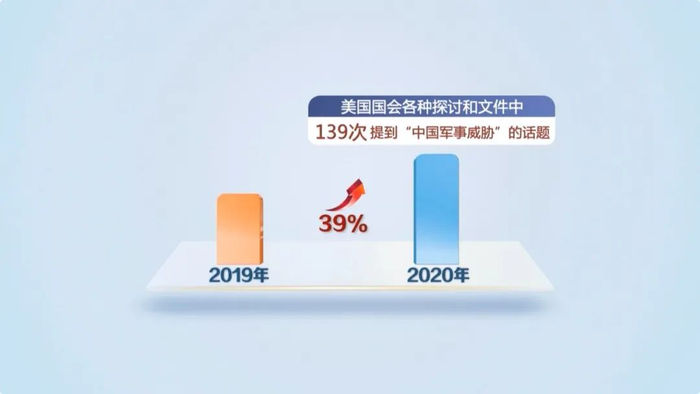 而且,这一话题还成为了美国国会的重点政治议题之一:在2020年全年,美国国会各种探讨和文件中就有139次提到了“中国军事威胁”的话题,比前一年增加了39%。