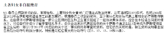 2018年,联合国禁止酷刑委员会曾经通过关于加拿大第七次定期报告的结论性意见,对加原住民妇女和女童被广泛强迫或胁迫绝育表达关切。这份意见书提到,有报告称,加国的土著妇女和女童被广泛强迫或胁迫绝育,这可追溯到1970年代,还包括2008年至2012年在萨斯喀彻温省发生的最新案件。