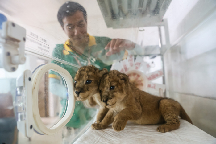 “小狮子刚送来时,除了有一点微弱的呼吸外,已经没有其他生命迹象。兽医当时估计它活不过一天。后来,我们给它保温、用接近体温温度的水给它擦身上,才让它慢慢有了知觉。”沈伟依然记得初遇小狮子的情景。