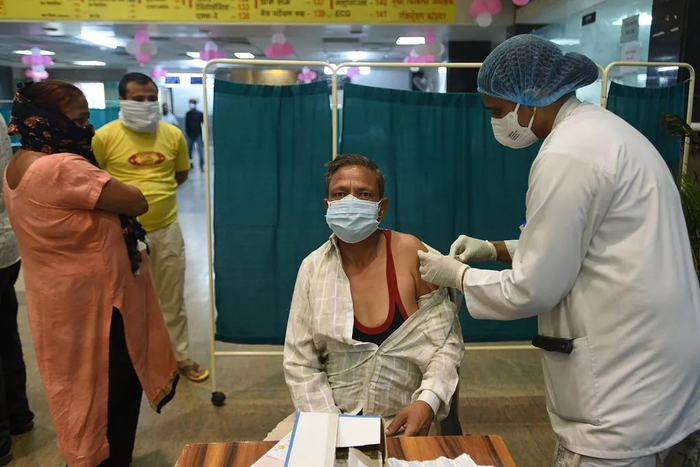 当地时间2021年5月18日,印度诺伊达,新冠疫苗接种工作持续中。