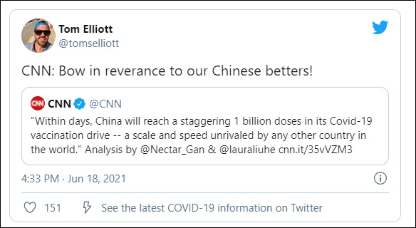 [文/观察者网 王世纯]当地时间18日,美国有线电视新闻网(CNN)报道中国疫苗接种量将破十亿剂次,感叹中国疫苗“接种迅速”。这样一篇平白无奇的新闻,却让CNN摊上了事。