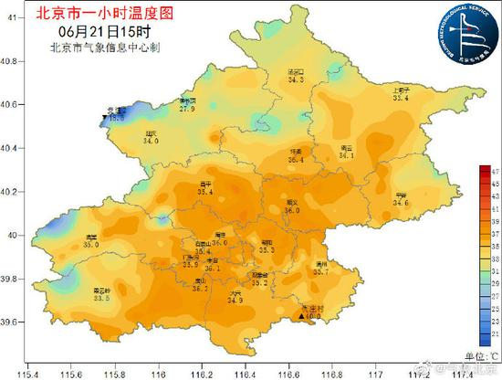 今日是“夏至”节气,所谓“夏至三庚数头伏”。夏至后气温高、湿度大,消夏防暑记得要及时补水。今天下午,北京大部分地区的最高气温超过了35℃的高温线。下午15时,南郊观象台的最高气温达到35.2℃,全市最高气温出现在通州区的仇庄村,达到40.0℃。