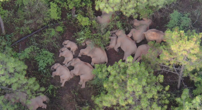 象群在玉溪市易门县十街乡南山山顶附近安然入睡。
