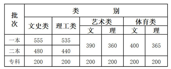 录取最低控制分数线公布