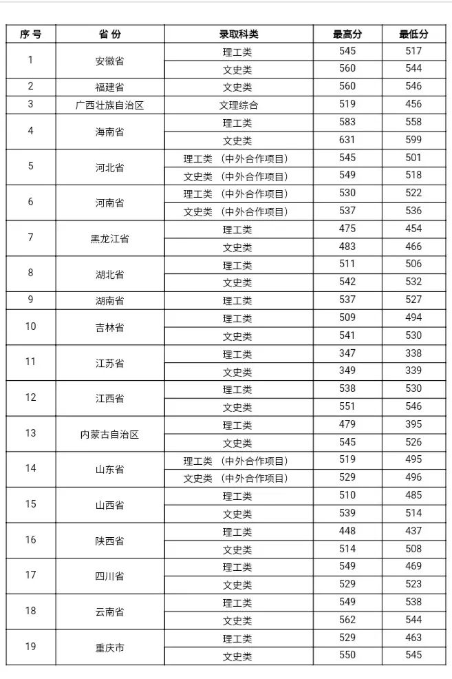 贵州师范大学近三年省外文史类、理工类各专业录取分数情况
