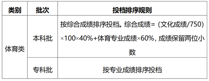体育类投档排序规则是什么?